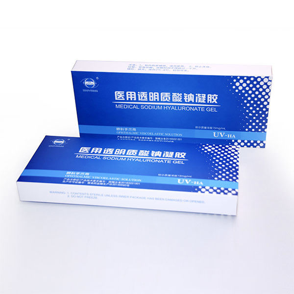 1,5% ist Augen- Natrium- Hyaluronate-Gel 1.0ml mit einer physiologisch ausgeglichenen wässerigen Lösung von Natrium-hyaluronate in eine Spritze vor-gefüllt. Der Spritzenkegel wird mit einer Schutzkappe bedeckt und das Paket wird mit einer Spülungsnadel im Beutel ausgerüstet. Das Produkt ist sterile durchgehende Filtrationssterilisierung und aseptisches prozesskontrolliertes und kann einmal verwendet werden.